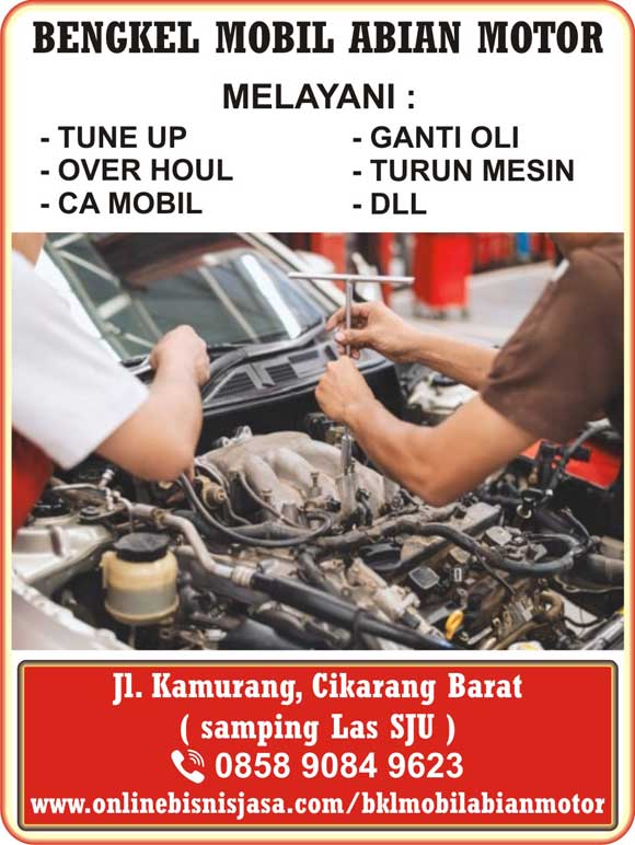 Informasi Bengkel MobilBengkel mobil Abian Motor admin1 tahun ago00 mins Navigasi pos Previous: Bengkel Las & Kontruksi Abadi Jaya SteelNext: Adinjaya Plafon PVC Tinggalkan Balasan Batalkan balasanAlamat email Anda tidak akan dipublikasikan. Ruas yang wajib ditandai *Komentar * Nama * Email * Situs Web Simpan nama, email, dan situs web saya pada peramban ini untuk komentar saya berikutnya.