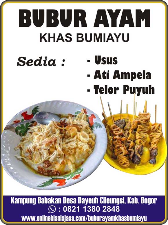 Informasi Rumah MakanBubur Ayam Khas Bumiayu admin1 tahun ago00 mins Navigasi pos Previous: Pangkalan Ayam Bu Hj AcingNext: Bumi Permata Indah Gypsum Tinggalkan Balasan Batalkan balasanAlamat email Anda tidak akan dipublikasikan. Ruas yang wajib ditandai *Komentar * Nama * Email * Situs Web Simpan nama, email, dan situs web saya pada peramban ini untuk komentar saya berikutnya.