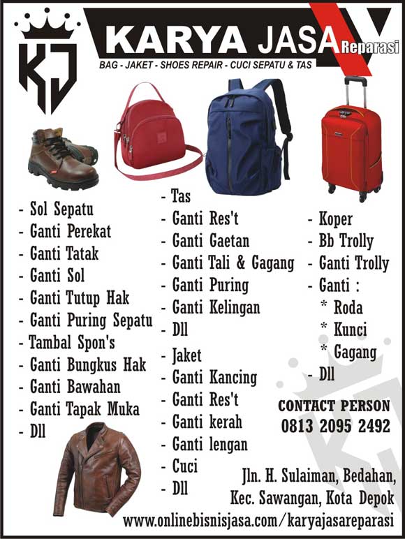 Informasi Sepatu dan SendalKarya Jasa Reparasi admin2 tahun ago2 tahun ago00 mins Navigasi pos Previous: Karunia AutoNext: Karya Jati Furniture Tinggalkan Balasan Batalkan balasanAlamat email Anda tidak akan dipublikasikan. Ruas yang wajib ditandai *Komentar * Nama * Email * Situs Web Simpan nama, email, dan situs web saya pada peramban ini untuk komentar saya berikutnya.