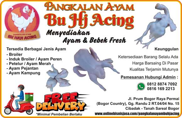 Informasi Pemotongan AyamPangkalan Ayam Bu Hj Acing admin1 tahun ago00 mins Navigasi pos Previous: Balai Pengobatan TradisionalNext: Bubur Ayam Khas Bumiayu Tinggalkan Balasan Batalkan balasanAlamat email Anda tidak akan dipublikasikan. Ruas yang wajib ditandai *Komentar * Nama * Email * Situs Web Simpan nama, email, dan situs web saya pada peramban ini untuk komentar saya berikutnya.