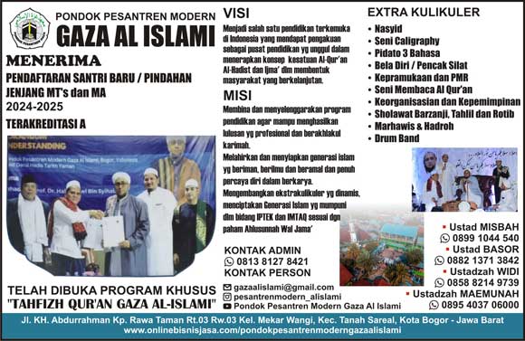 Informasi SekolahPondok Pesantren Modern Gaza Al Islami admin2 tahun ago00 mins Navigasi pos Previous: Berkah Interior SayeedNext: Bengkel Las Cahaya Baru Tinggalkan Balasan Batalkan balasanAlamat email Anda tidak akan dipublikasikan. Ruas yang wajib ditandai *Komentar * Nama * Email * Situs Web Simpan nama, email, dan situs web saya pada peramban ini untuk komentar saya berikutnya.