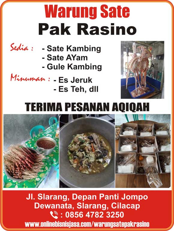 Informasi Rumah MakanWarung Sate Pak Rasino admin1 tahun ago00 mins Navigasi pos Previous: Warung Soto Campur SariNext: Warung Sate Buntel Tinggalkan Balasan Batalkan balasanAlamat email Anda tidak akan dipublikasikan. Ruas yang wajib ditandai *Komentar * Nama * Email * Situs Web Simpan nama, email, dan situs web saya pada peramban ini untuk komentar saya berikutnya.